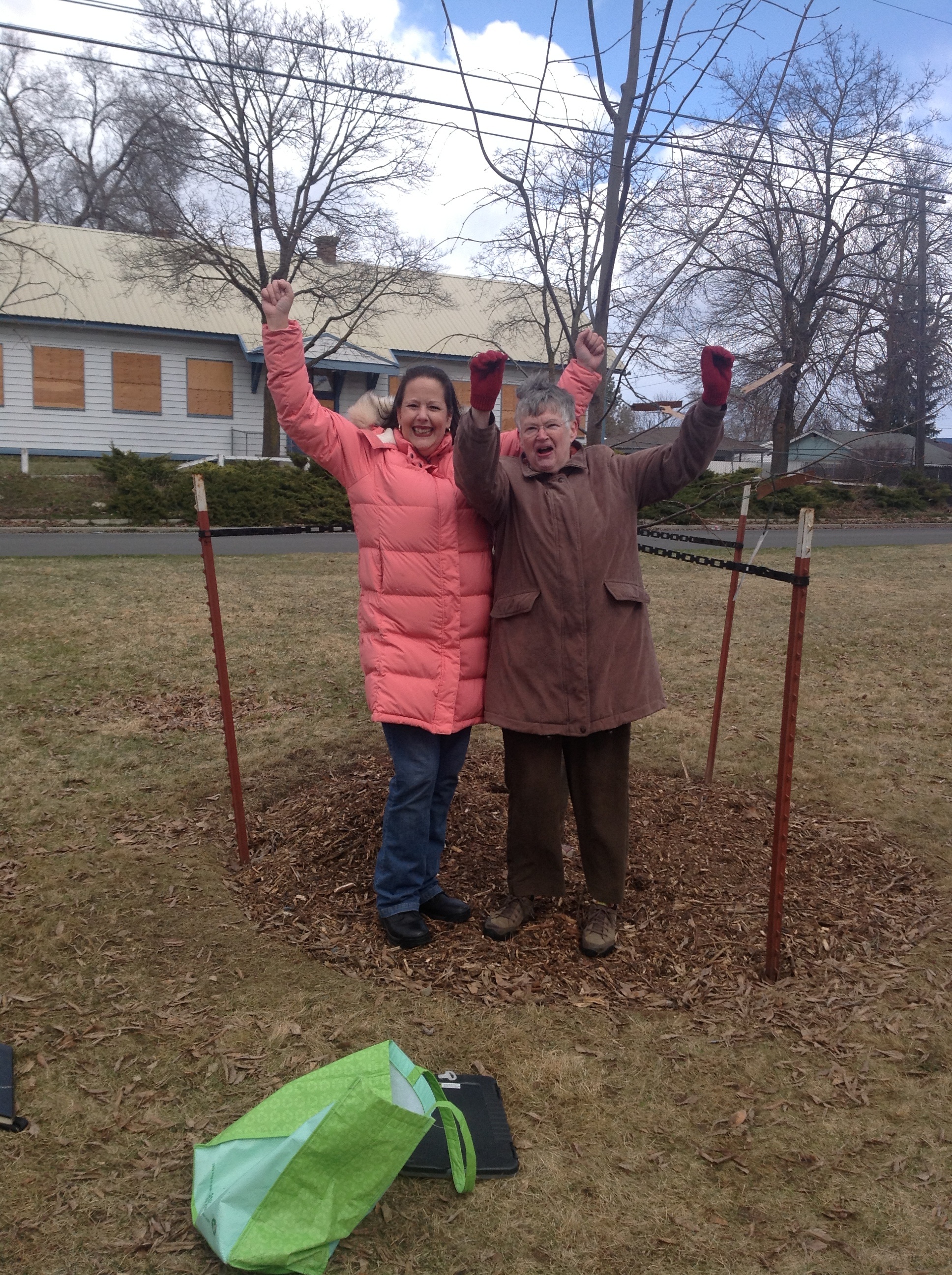 Now it’s time to leave those sorrowful memories and go to joy – planting imagea linden in Ruth Park. This tree planting is always a small private affair. This year Susie’s childhood friend, Amy Warren, came with her yearbooks and Susie’s signings. Despite the cold and the graupel it was a joyful tree planting. These trees are one way I keep you and your influences out in the world where you should be.