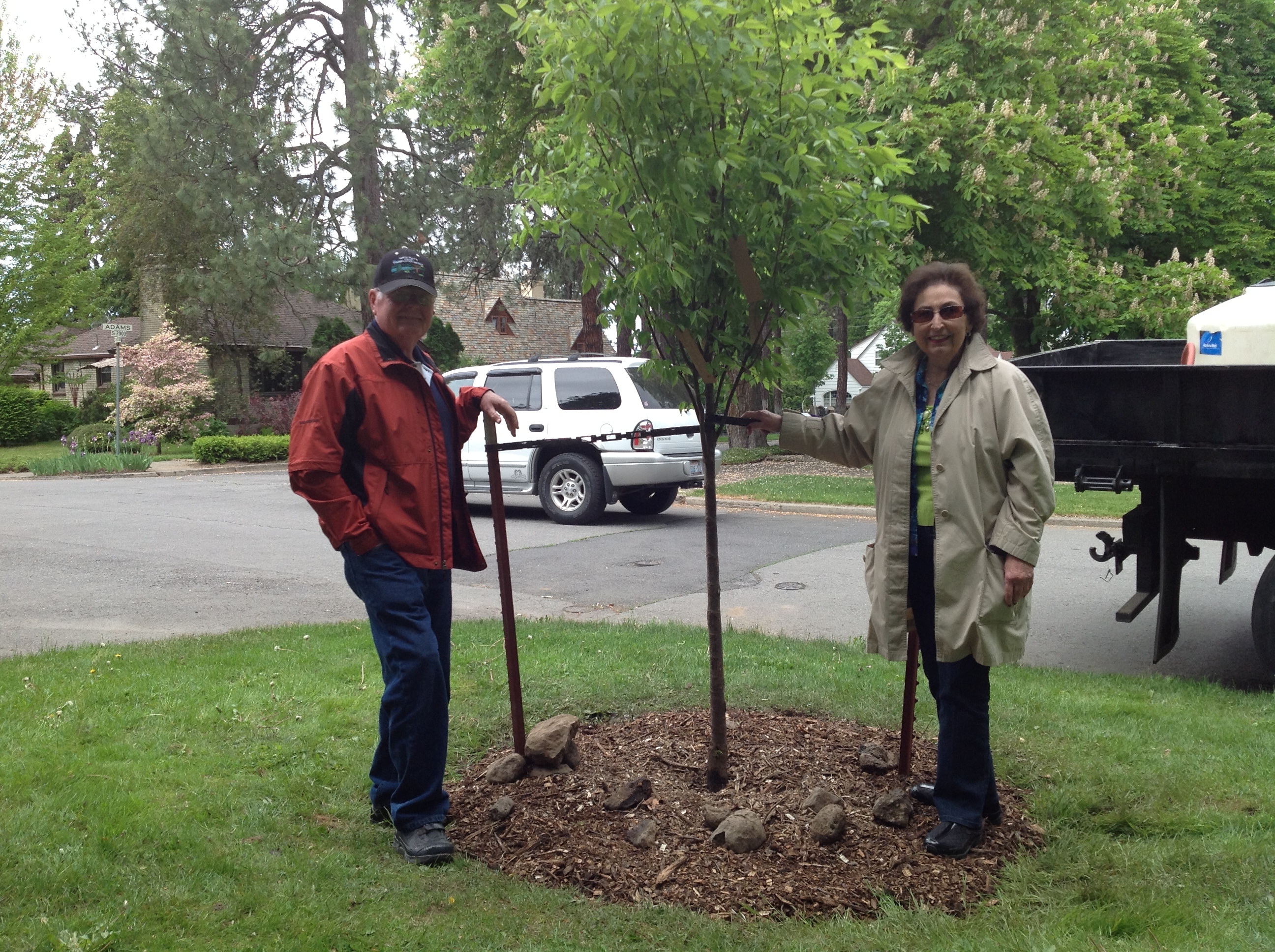 On Tuesday I was a host for two members of the Friendship Force club from Cheyenne, Wyoming. As part of the sights I was showing them we drove down 21st Ave. and stopped to plant a tree