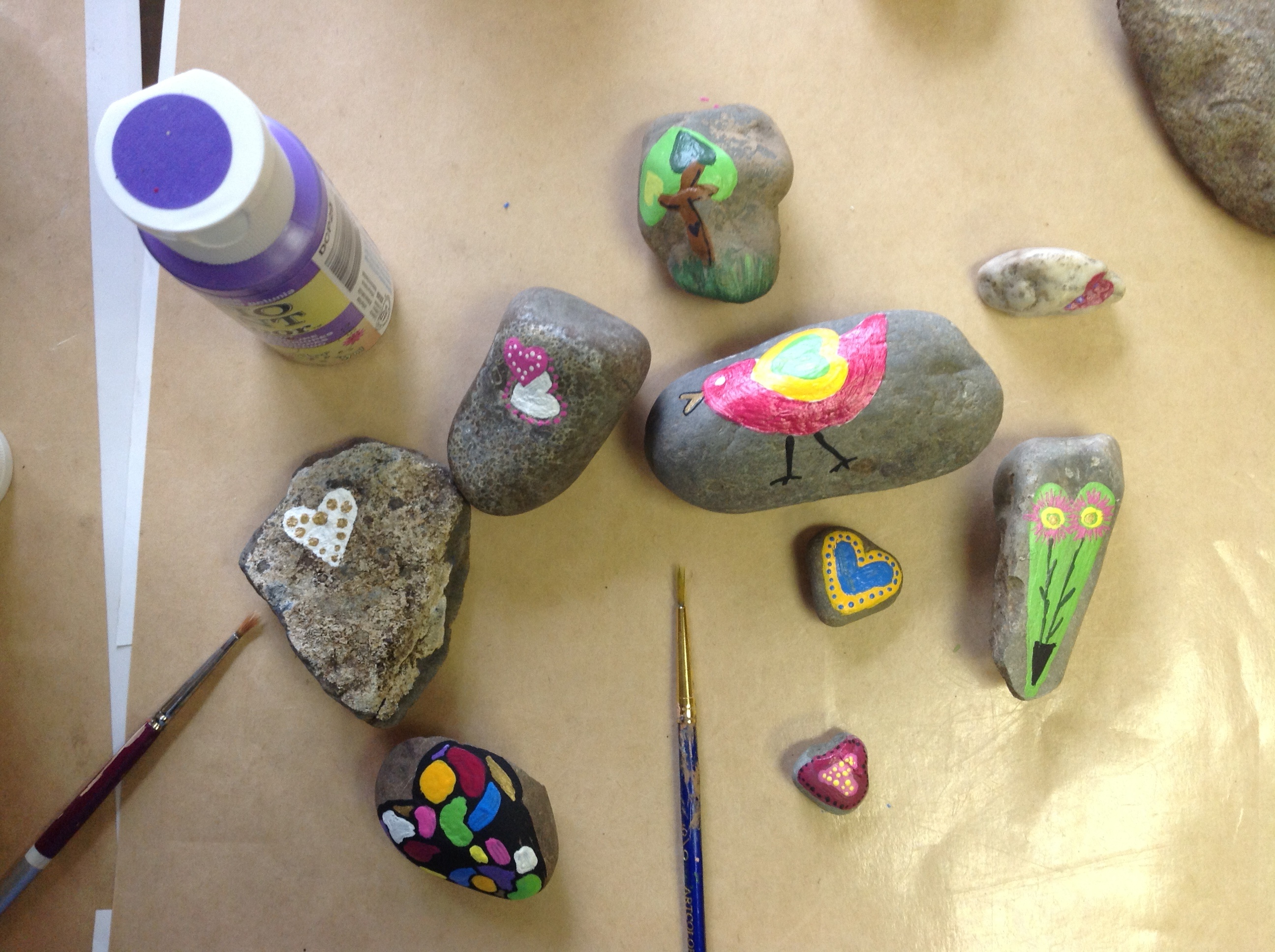 And last of all this was the year of the painted stones. It’s fun getting the paints and brushes out and deciding what kind of heart belongs on each stone. And I’m getting to go back and visit all the trees. I love this thread connecting all the trees in the Forest.