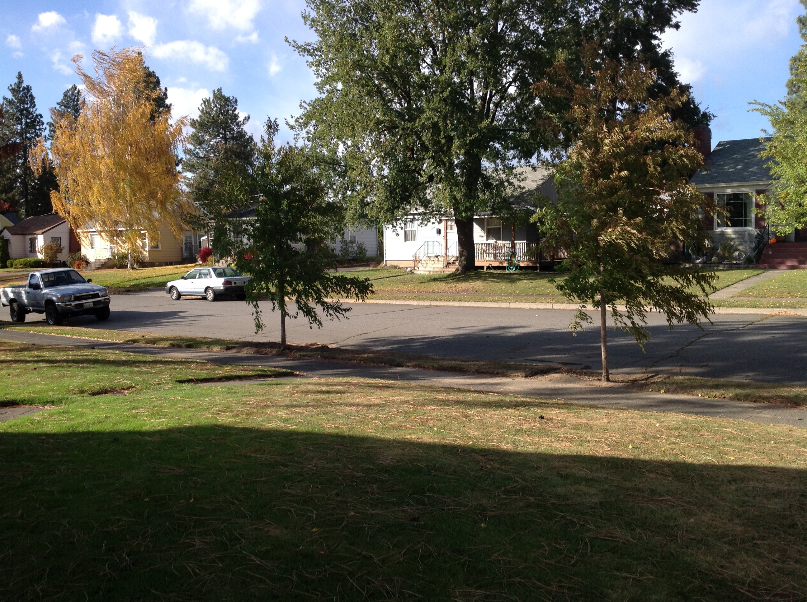 In the last month there have been two bonuses to my housesitting, petsitting, plantsitting jobs. Last month I stayed at a cute little house with a great backyard, a nice kitty — and three Susie trees, an Elberta peach in the backyard and two Amur maples in the planting strip out front.