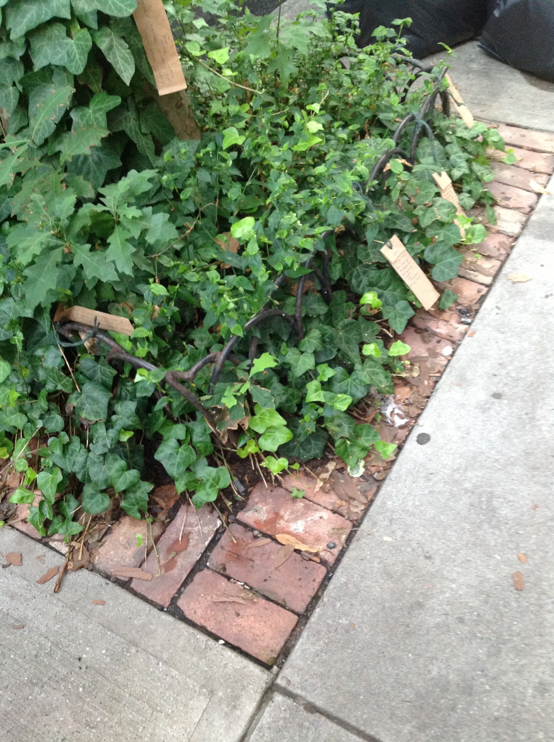 We talked plans for the tree pit – perhaps a new fence, perhaps bricks from the family home in Glencoe, Illinois, perhaps some flowers, but definitely getting rid of the ivy.