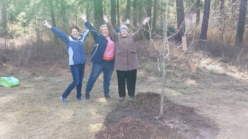 There will be a bigger dedication tomorrow morning. I chose the location of this tree because I wanted a Susie tree near my young friend Holly’s house. She planned and made the heart-shaped planting happen last fall. Those trees are a long way from her house and I wanted her and her family to have a Susie three where they could watch it grow. Tomorrow will be a more festive day.